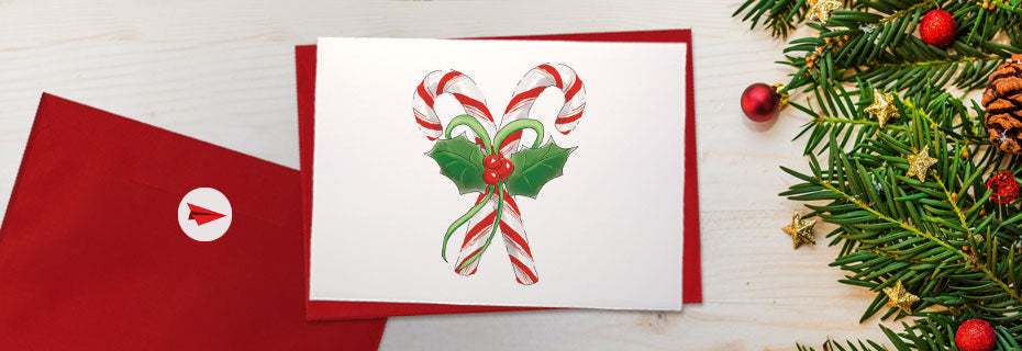 Old Fashioned Candy Cane Card DESIGN: Nothing like old fashioned candy canes during the holiday season! A hand painted illustration, captured and printed digitally. SENTIMENT: Blank (We are happy to add your own personalized message on the inside of your...