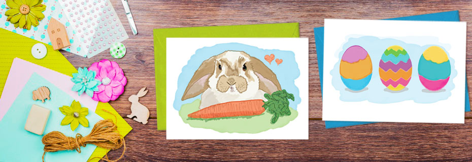 Easter Greeting Card Box Set This set of 10 hand illustrated Easter greeting cards comes with 2 of each card design (pictured), along with matching envelopes. DESIGN: Included designs: 2 Bunny Carrot Cards, 2 Cadbury Egg Cards, 2 Easter Basket...