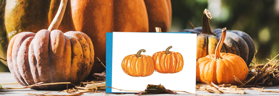 Fall Pumpkins DESIGN: Know someone that hasn't found that perfect fall pumpkin yet? This may just be the one they're looking for! Great card for Thanksgiving and the Fall season. A hand painted water color illustration, captured and printed digitally....